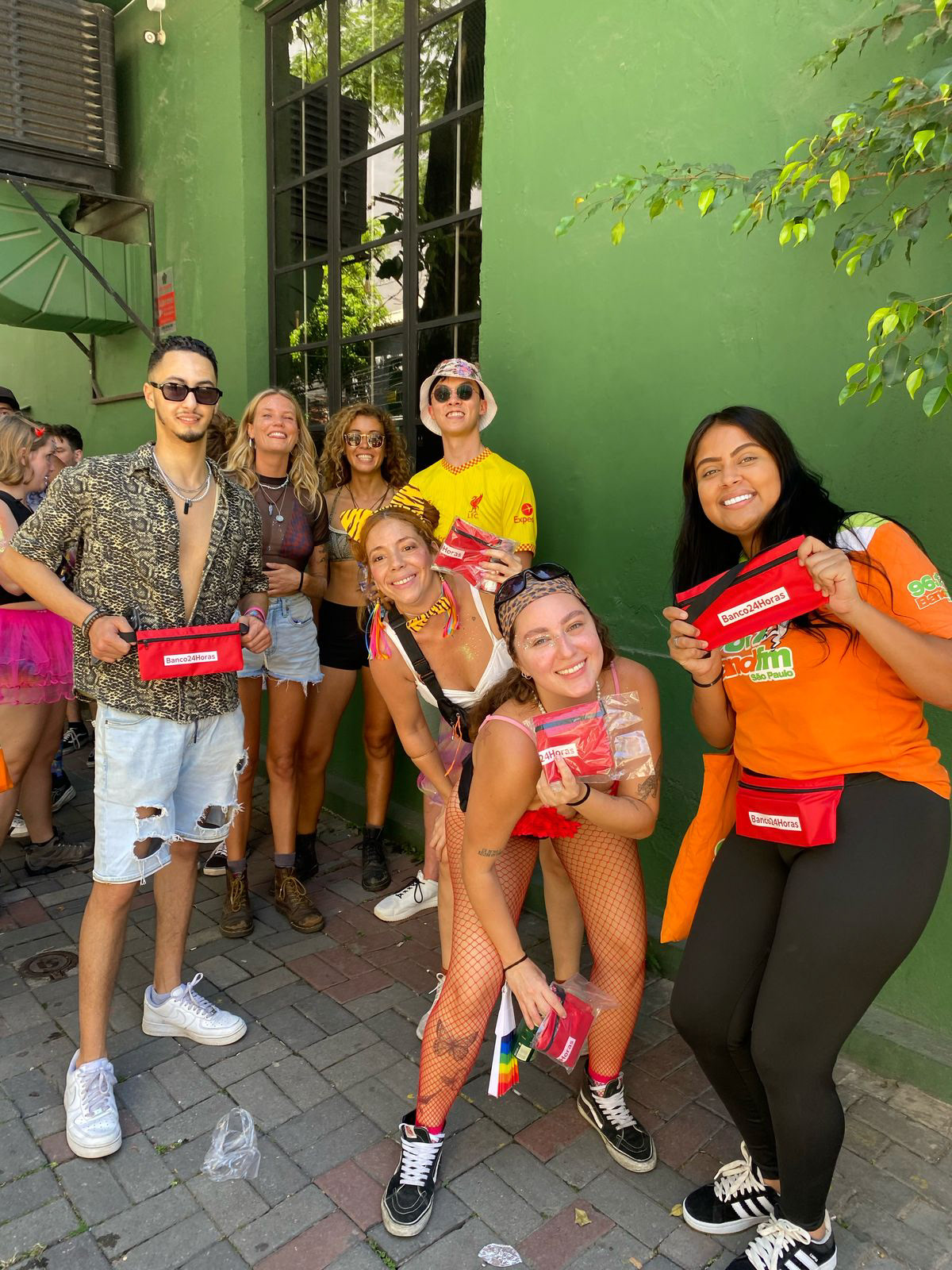 Além da campanha online e offline, com direito a uma música própria, foram distribuídas “doleiras” (ou pochetes) em alguns blocos de São Paulo, promovendo assim, mais segurança para os foliões.